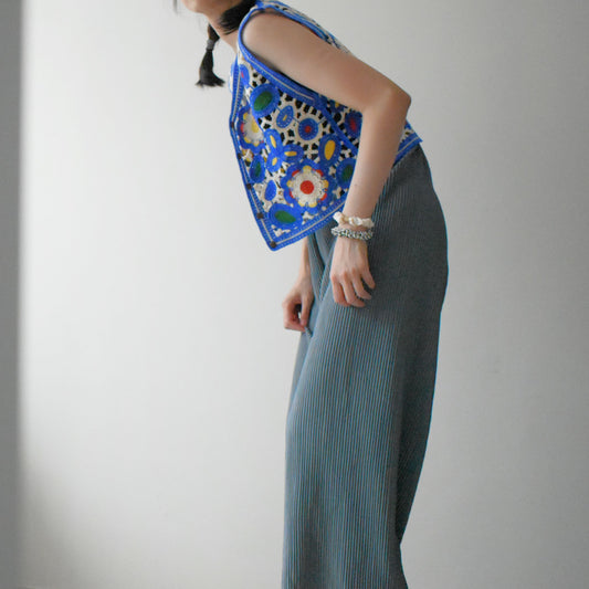 精選! 2-way刺繡藍色花花背心